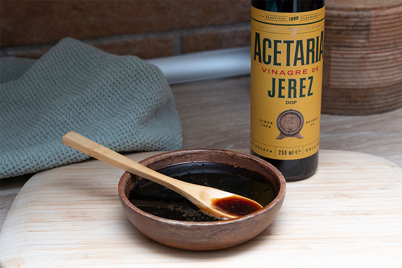 Desde Acetaria, fabricante de vinagre, hoy te presentamos en nuestro blog de recetas con vinagre la receta de reducción de vinagre de Jerez. Querrás prepararla una vez tras otra. Una salsa o aliño muy versátil que podrás utilizar en todo tipo de platos fríos o calientes. Con un sabor muy característico, intenso y aromático, a la que es fácil que te vuelvas adicto.